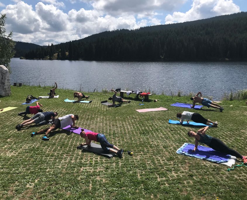 Ziua de vineri a început în forţă. La 06.45, alături de alţi curajoşi, am început înviorarea: o alergare de aproximativ 2 km şi mai multe exerciţii fizice, chiar lângă cabana de pe malul lacului. Cu un asemenea peisaj şi inspirând aer curat în plămâni, am şi uitat să ne văicărim că am mai fi dormit puţin. După prânz, spre surprinderea noastră, şi-a făcut apariţia soarele. Am profitat din plin de cele câteva raze şi am început o sesiune de exerciţii de forţă, urmate apoi de diferite elemente de stretching. Şi cum eram încălziţi, ne-am făcut uşor curaj să intrăm în apa lacului Beliş, deşi avea doar 17 grade. În costume de neopren, am făcut mai multe ture de înot de la un mal la celălalt.